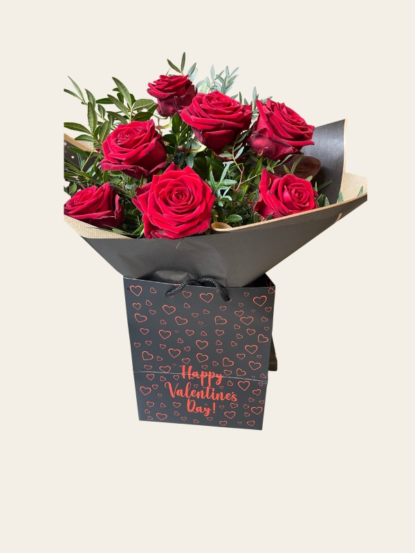 Presented in a water source for lasting freshness and elegantly packaged in a stylish gift bag, this bouquet is perfect for expressing love and admiration on any occasion.