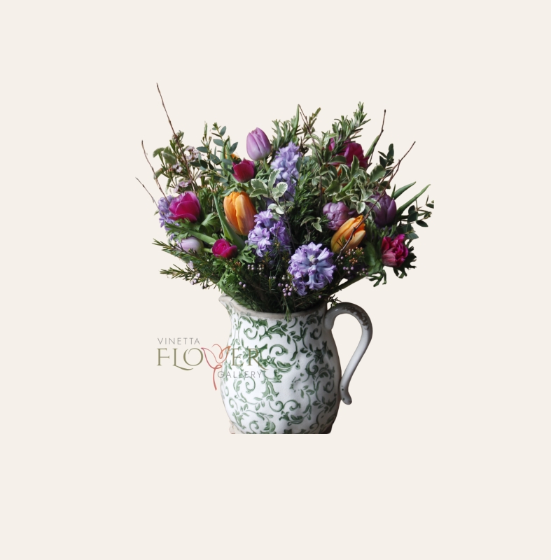 Naturally created seasonal flowers in a charming jug — feel the beauty of the season in every stem.